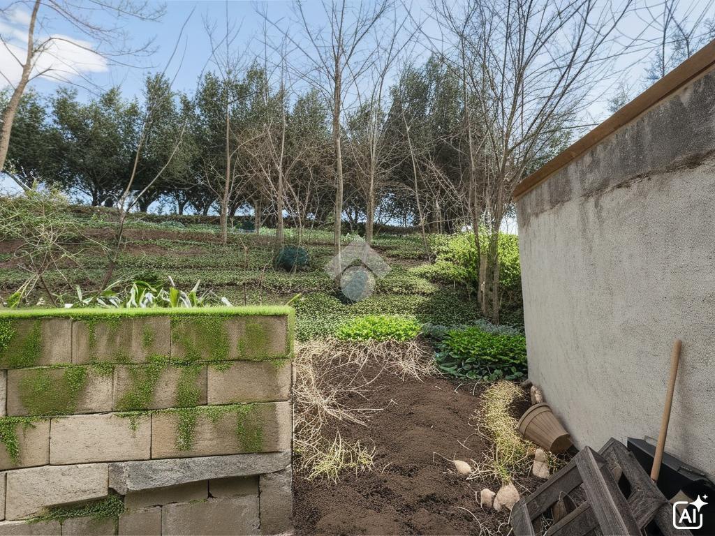 L'ampio terreno di circa 1700mq circonda l'abitazione ed attualmente sono presenti 25 piante di ulivo e altri alberi da frutto.